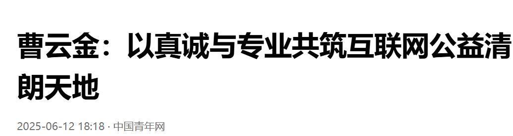 《曹云金:以真诚与专业共筑互联网公益清朗天地》(中国青年网)、